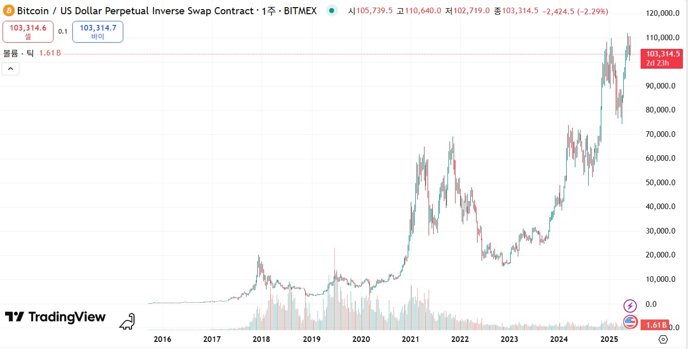 2023년 저점 $15.5k 이후는 새로운 슈퍼사이클의 1파로 보는 시각이 많다.